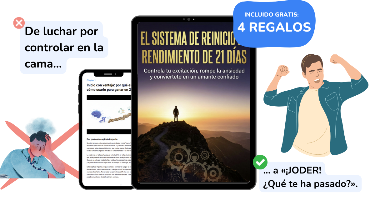 El sistema probado que está transformando a hombres de 2-3 minutos en amantes seguros y orgullosos de sí mismos en solo 21 días.