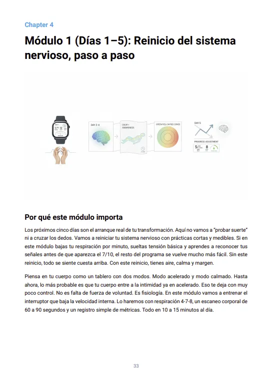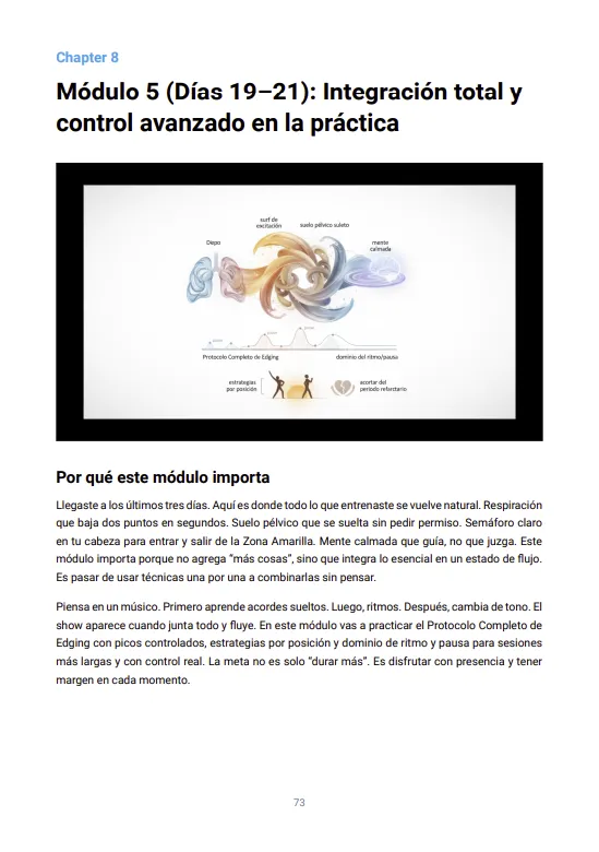 5 módulos probados (más de 250 páginas) que reeducan la respuesta de tu cuerpo y te dan un control total sobre cuándo terminas